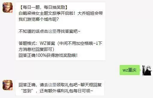王者荣耀这次的主题是关于文旅季的,很多玩家想要知道这个答案是什么,不清楚最新浏览哪个城市,想要知道这个答案是什么的小伙伴们,就一起来看看这个答案是什么吧。