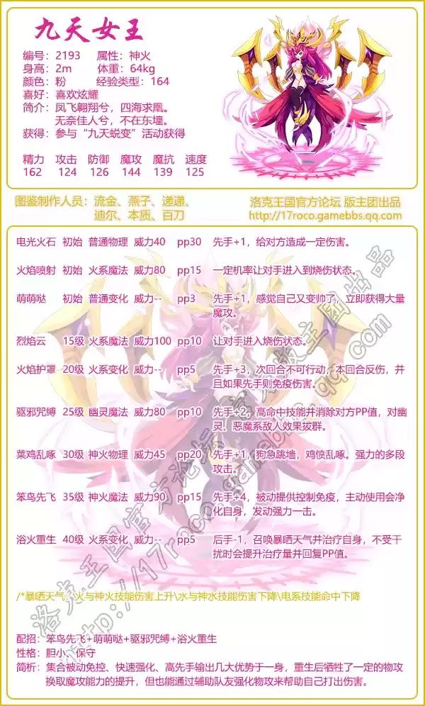 进化路线:丽丽鸡→九天女王→揽月圣女