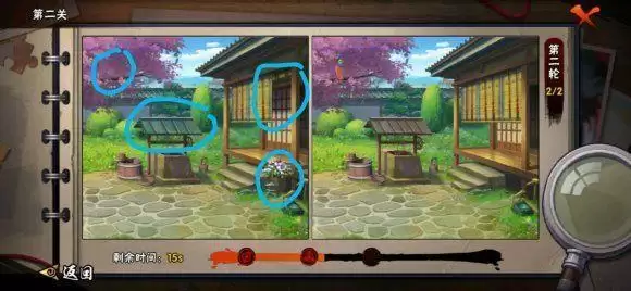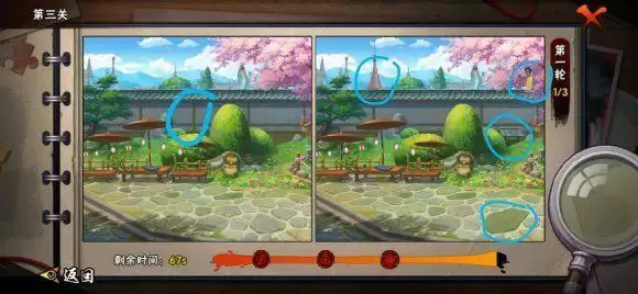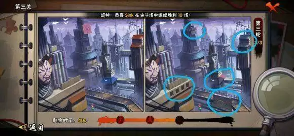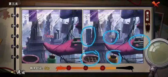 2、后面多关卡的时候可以按照第一关的方法先把所有不同找出来,然后在时间结束前退出,接着重新开始几秒完事。一定要在时间结束前退,不然就到下一关了。