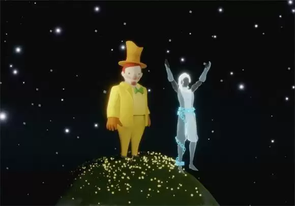 飞到舞台后,可以在舞台右侧石像的背面看到先祖