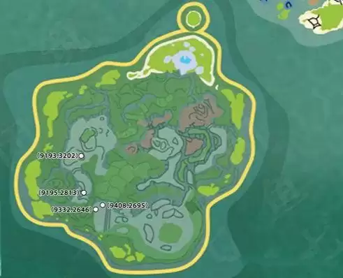 1、如上图所示就是巨型结晶树位置分布图了,坐标位置有:9193.3202、9195.2813、9332.2646、9408.2695。