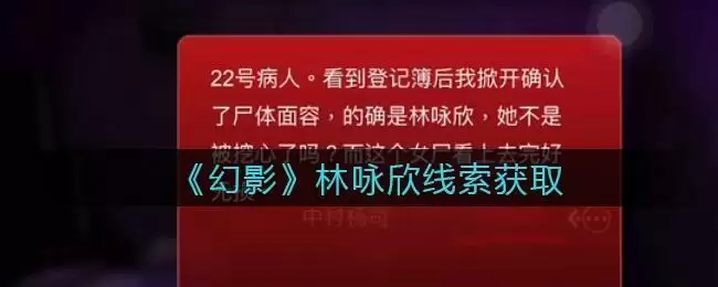 孙美琪疑案幻影二级线索——林咏欣在哪里呢?《幻影》疑案是孙美琪疑案第七季第四集,游戏中线索很多,大家可能不能一一找到,下面是手游网珞珞小编给大家带来的《孙美琪疑案:幻影》林咏欣线索位置获取方法攻略介绍,正在找线索的小伙伴一起看看吧!