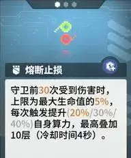 总的来说熔断止损碰到了就可以拿。但这张卡我们需要的只是伤害不超过血量的5%这一个效果,所以这张卡升级的优先度比较低,因为升级只会提升每次触发时守卫提升的算力加成。值得一提的是这张函数给守卫带来的算力加成也是非常高的,可以让有算力伤害技能的守卫打出不俗的伤害。