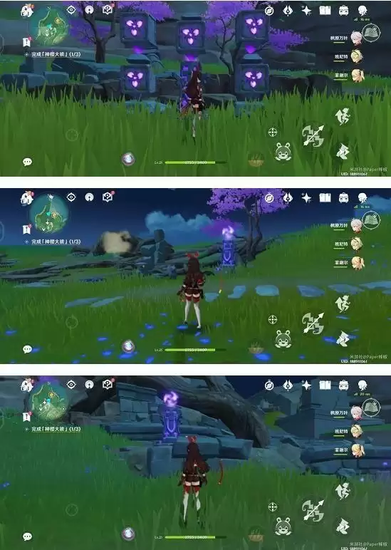 右边有路,走过去,用雷种可以拿到一个雷神瞳,不管雷种继续走碰到一个解谜需要走亮所有方块 发光的最后一个踩,比较简单,做完一个还有一个。