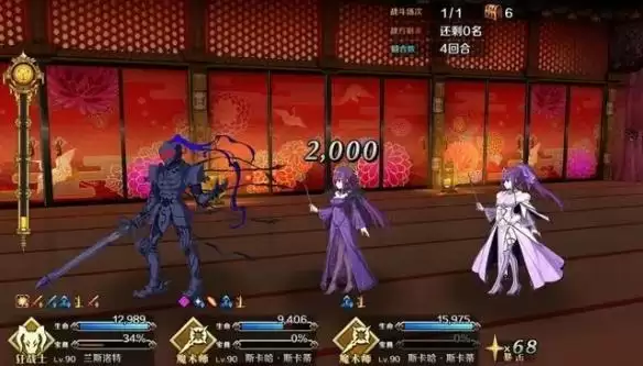 当然具备一定配置的队伍还是可以进行爆破,例如有高宝的伯爵、狂兰、仇凛、芭娜娜、杀生院之类的,配合对应的辅助进行宝具连发,敌人的伤害较高,也可以使用嘲讽礼装卖掉前排的拐,让后续的拐补上来保证4回合的buff,NP不够的话直接用令咒填充,反正不是录视频表演竞速的话也不用节省令咒。