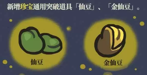 仙豆和金仙豆都是针对珍宝的突破道具,当珍宝达到一定等级上限后消耗以上材料进行突破,可以获得更高的等级上线,进一步提升属性。