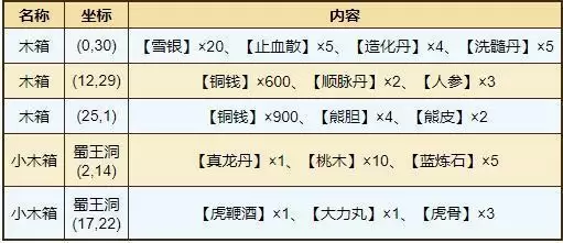 蜀王洞(17,2),(15,6)搜索可以获得一些东西