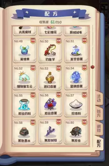 58:黑色墨水:魔法冰泉少量、矿盐少量、黑炭少量