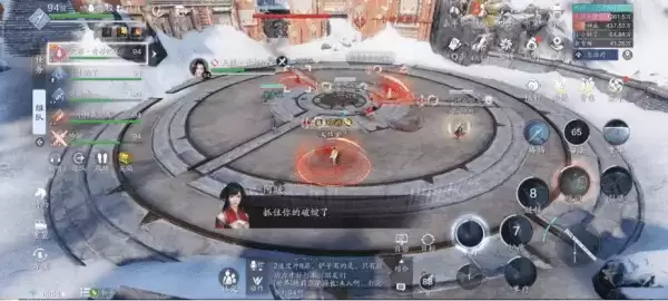 95%血量,BOSS释放该技能。各位少侠看好BOSS血量,可以卡点开格挡,尽量减轻天香压力。