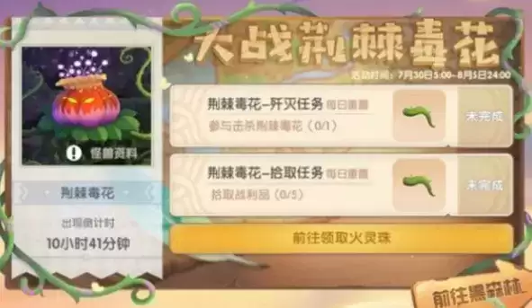 7月30日到8月5日,每天18点到22点可以进入并挑战荆棘毒花;