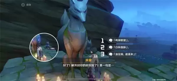 用雷元素攻击下大狐狸石像,解封咒语顺序,依次从上往下点即可,获得【镇物】。