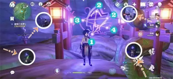 先激活4个雷柱子,解锁机关,开启井里的机关;像骰子的机关解谜,把颜色较深的花纹全部调整到一面即可。(建议使用射手,可远程攻击,视角方便观察位置)