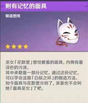 只有使用面具后才能锻造法器白辰之环,优秀的法器有很多。白辰之环并不是必须物品,如果完整看完任务剧情被花散里感动的话,面具完全可以作为纪念物品留在背包里。
