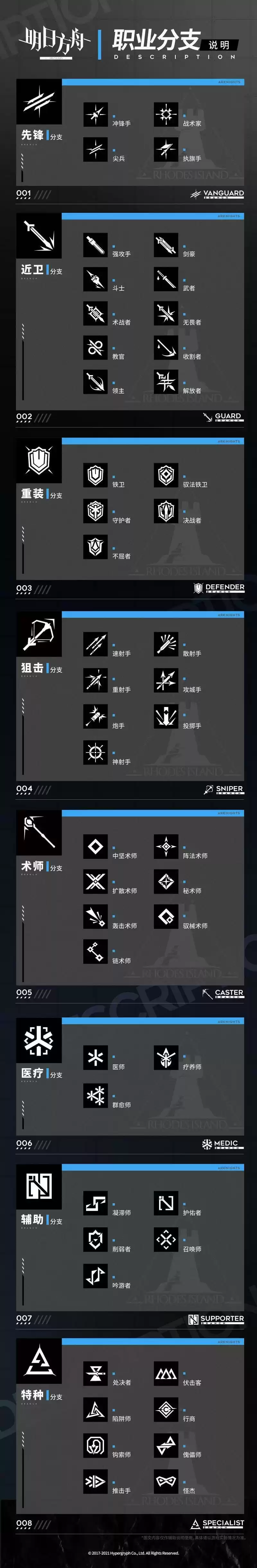 具体的职业分支类别详见下图。本次更新后,将实装部分干员的[模组内容];