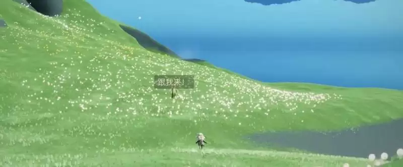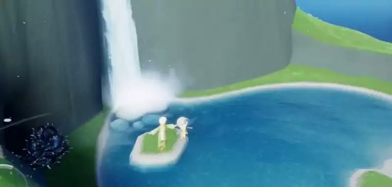 4、完成喷泉前的剧情,小王子会跟我们牵手去寻找瀑布,瀑布就在圣岛主岛的正面。玩家靠近就会触发剧情,如果先不触发剧情的话可以牵着小王子截图互动。