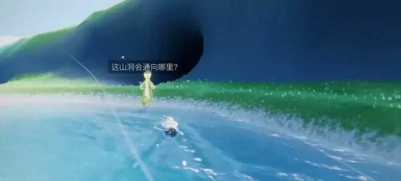 5、跟着小王子从瀑布旁边的山洞滑下去,到达海滩触发剧情。