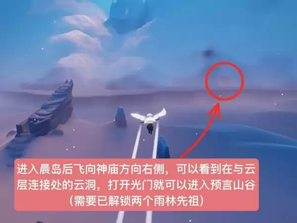 1、去晨岛右边的云洞地图,打开屏障门进入预言山谷。