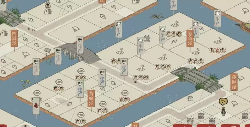 所有生产均用普通居民,可以良好的解决其他城市人员不够用的问题,同时,一个饭店也正好好对应一块盐田的消耗(都是300)。时间也基本持平(差距30分钟之内)。农田3-6块,鱼塘(蟹塘)
