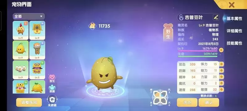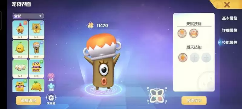 3.在宠物图鉴界面可以看到宠物的不同的成长优势属性,可按图鉴进行对应的加点