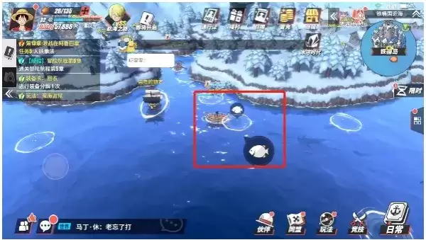 1、必须在游戏中的海中才能钓鱼,在其他区域是不可以的。点击小地图找到“伟大航线”,去到该区域点击进入即可上船。