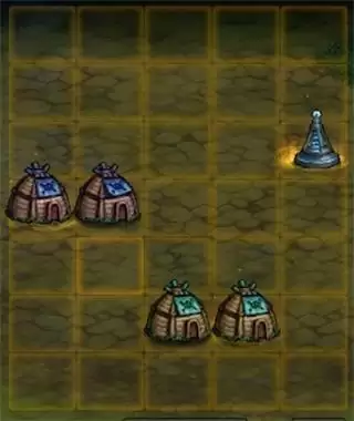 1-4的牛头械王需要我们手动三消,在进入关卡之前,我们将阵容变更为2个哥布林营地和2个沃利的小屋。这样可以发挥出三消的最大价值。