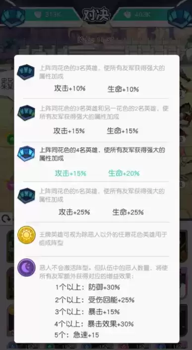 所以根据自己的情况,5同阵营当然是最好的,当然大部分人培养5同阵资源不够分配,所以可以根据情况选择,4+1,3+2,不太推荐3+1+1阵营加成太少。