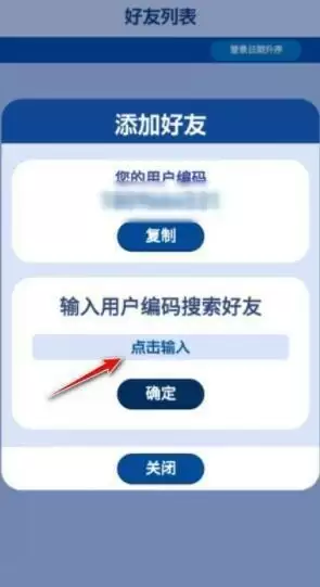 进入游戏大厅,点击下方的好友按钮,之后点击右下角添加按钮,然后在点击输入用户编码,在键盘中输入用户编码,点击确定即可发起好友申请。