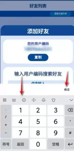 在键盘中输入用户编码,点击确定即可发起好友申请。