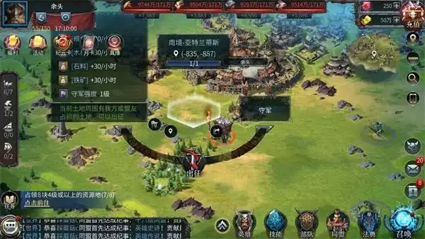 通过文明统治力的自动增加和建造升级统御塔可以提高统治力上限,占领更多的地块,但合理利用更为重要!