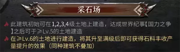 同时,在土地上进行建造后,原本由土地提供的资源加成会消失!所以,在资源匮乏的前期,请把建筑物尽量安放在1级土地上吧!