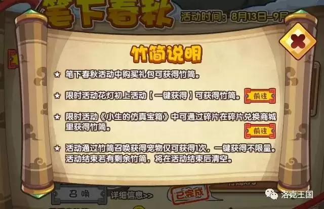 3、通过限时活动《小生的仿真宝箱》中可通过碎片在碎片兑换商城里兑换获得竹简。