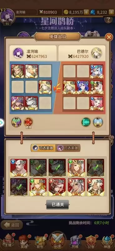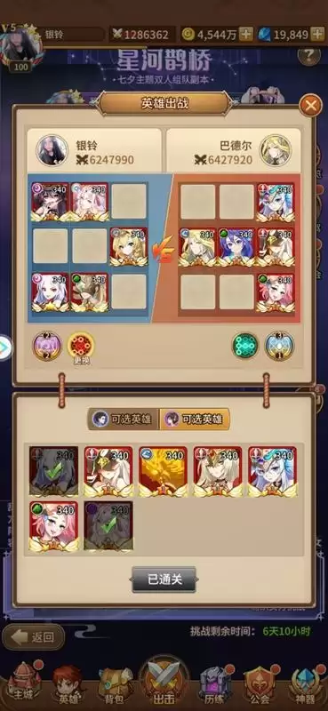 闪烁之光星河鹊桥第四、五过关站位第四关和第五关是一样的,就是一个牛郎打一个织女打
