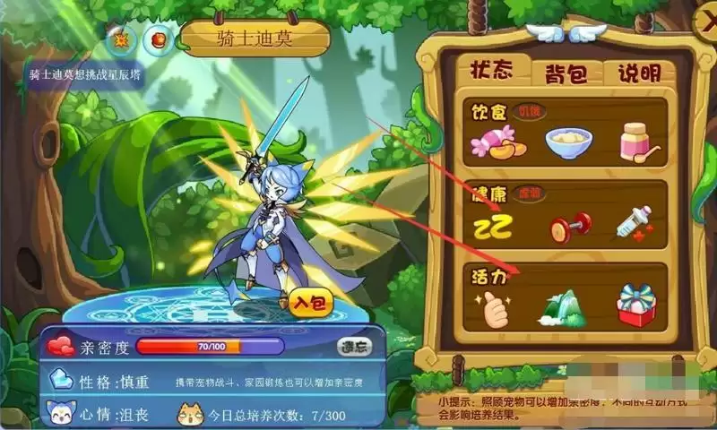 点击探险,选择你要探险的宠物,宠物探险成功可以获得大量的物品,可以用来提升亲密度