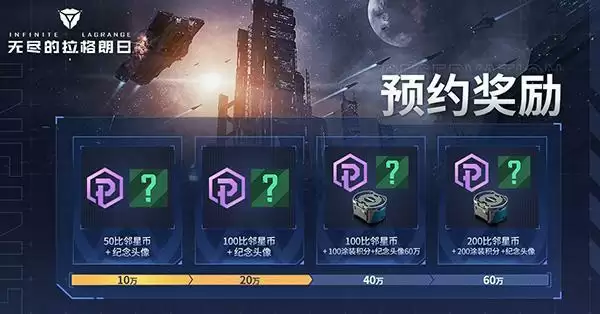 预约人数60万:200比邻星币++200涂装积分+纪念头像;。