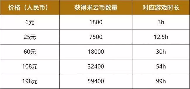 用于抵扣《云·原神》游玩时长,可通过购买获得。购买后可在信息界面及用户中心查看当前账户中米云币的余额。米云币有以下5个充值档位: