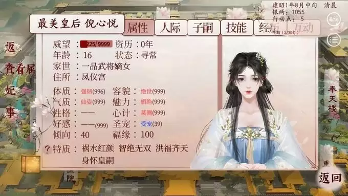 打开游戏后选择“我的”内宫,并选择皇嗣管理,在这里,玩家可以选择任意一个皇子,其后打开该皇子的培养页面,并将之培养方式替换为顺其自然-亲自教导-为人处世,如此在完成最终的培养后,小伙伴们的器重属性自然而然的就行获得提升了。