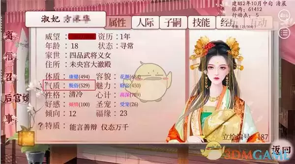 多去掖庭,会碰到一个叫老鸡的宫女,把她收回宫里,赏赐鸡粮,好感到120,这样每年八月都会给你送金蛋,吃了加超多属性