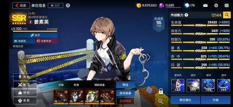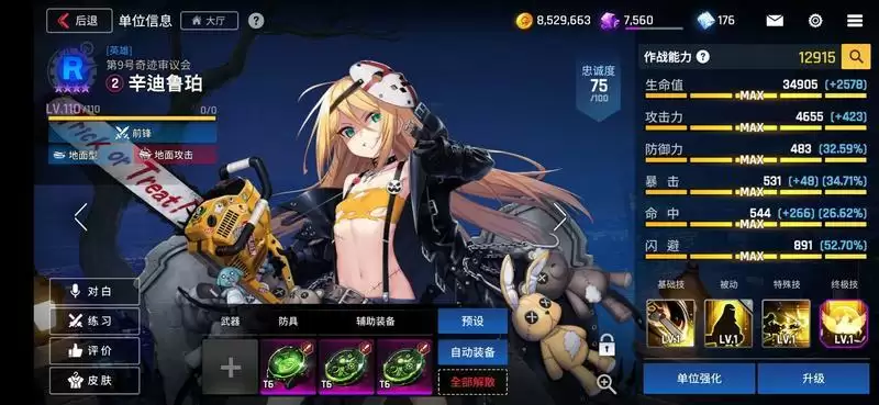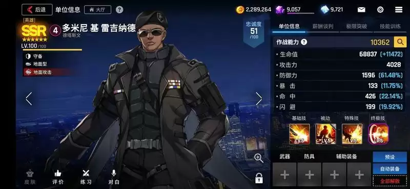 猎犬,作为R卡守备角色,更容易达到110级,这个面板几乎没有理由不去练它 ,超越了SR,SSR的面板,甚至于接近觉醒角色,唯一的缺点是技能比较单调,技能只能带来5秒钟的减伤,但在前期游戏角色不多的情况下,可以说非常坦,推荐生命套。