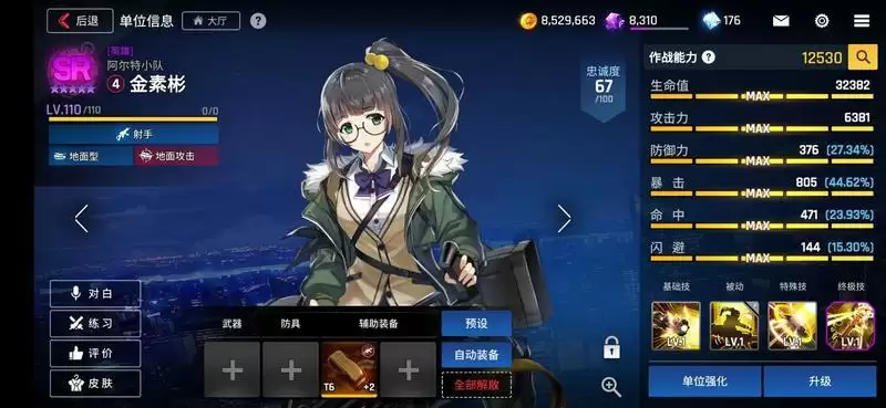 晓琳,不打PVP延缓再练,普攻必暴必定命中,PVP战术需要,主要用于克制前锋,韩服一般是用来针对凤凰以及比较肉的前锋,超导套爆伤对地拉满,基本落地3枪就能带走任何一个前锋,主要是被警车飞刀严重counter,输出环境太差导致不太好上场,PVP后手留警车的太多了,4费落地可能什么事都干不了就被警车+舰船技能带走,这几乎是所有地面狙的弱点,包括触手,殿堂爆伤4/超导4/攻击4/对前锋4/爆伤4。