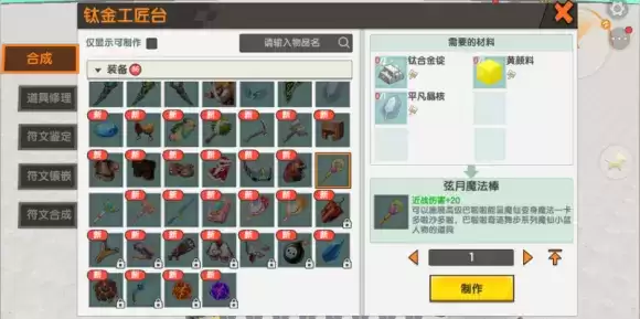 根据变身道具的不同,所需的材料也不同!比如【弦月魔法棒】需要钛合金锭1个,平凡晶核1个,黄颜料1个,【魔仙剑】则需要小木棍1个,钛合金锭2个,平凡晶核1个,钛合金锭和平凡晶核是必备材料。