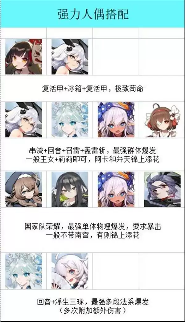 3一般通用队伍就。一个 aoe输出加一个单体输出。再来个 aoe破盾工具人。前排。辅助兼奶