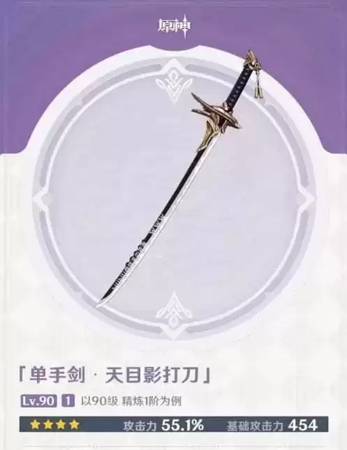 3、新出的四星锻造单手剑,平民玩家值得拥有非常合适,加攻击还能加充能,配个冰系猫猫罗萨莉亚大招也回的很快了。