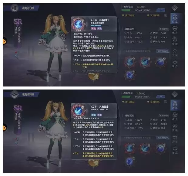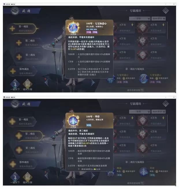 最重要的是第一魂技,可推进1名对友行动条,回复其2点魂力,并增伤2回合,同样非常契合单核打分阵容,在增伤的同时提升攻击力。第四魂技增伤也十分适用。
