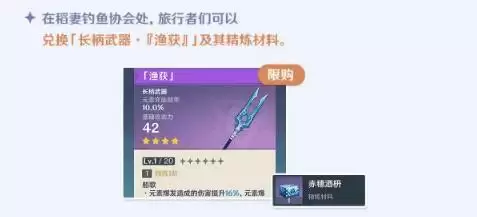 原神游戏中的渔获是新上线的武器,通过兑换可以获得,相信还有很多小伙伴不是很清楚渔获在哪里兑换。接下来小编就给大家介绍一下原神渔获兑换位置介绍,感兴趣的小伙伴们一起来看看吧。