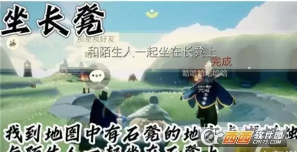 ①在地图的交友大厅中心就有双人长椅,和一个陌生人一起坐上去即可;