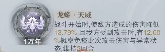 解析:开局2回合减伤,并有一定概率能够免疫受到的伤害和所受到的异常状态,