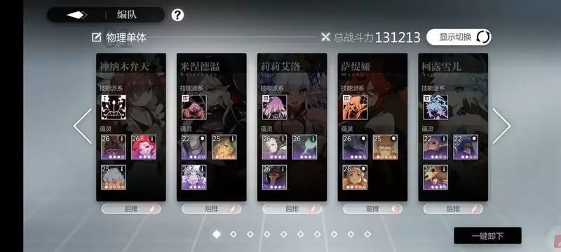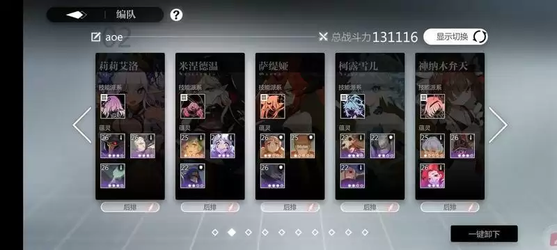 说重点,两个阵容的核心都一样,第一个是莉莉(初始送的,这卡是核心输出,单体和AOE都是她),第二个是神纳木bt(首冲),单体破盾核心。