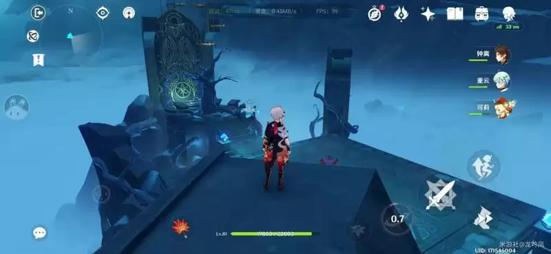 先到最高的柱子上,站到钟离或岩主的柱子上,再跳起用风之翼,同时用扇子加速到达下图所示的地方