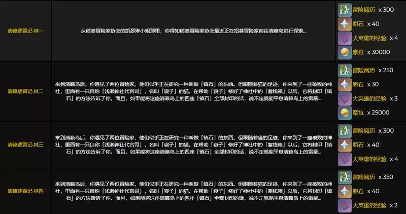 原神清籁逐雷记任务更新后玩家需要根据任务提示做任务,完成任务来获得奖励,这个任务有4个分支,很多玩家在探索,下面游乐小编为大家带来原神清籁逐雷记任务完成攻略。