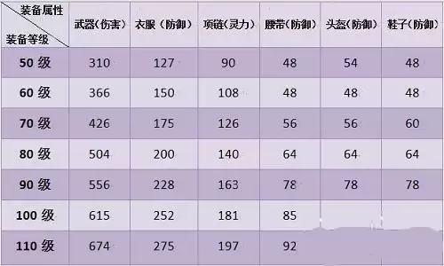一、各等级装备满属性